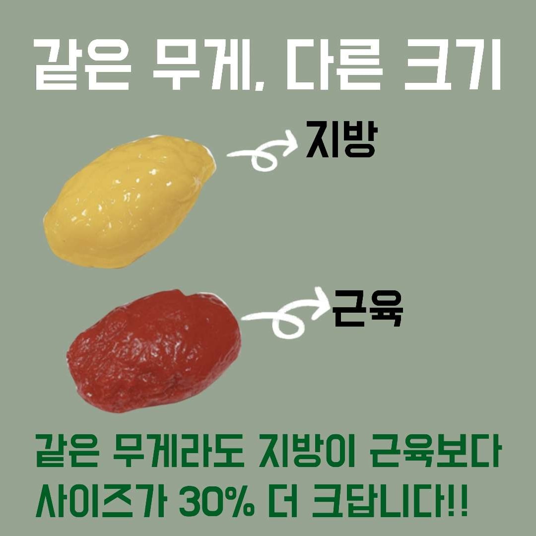 같은 무게라도 지방이 근육보다 크기 때문에